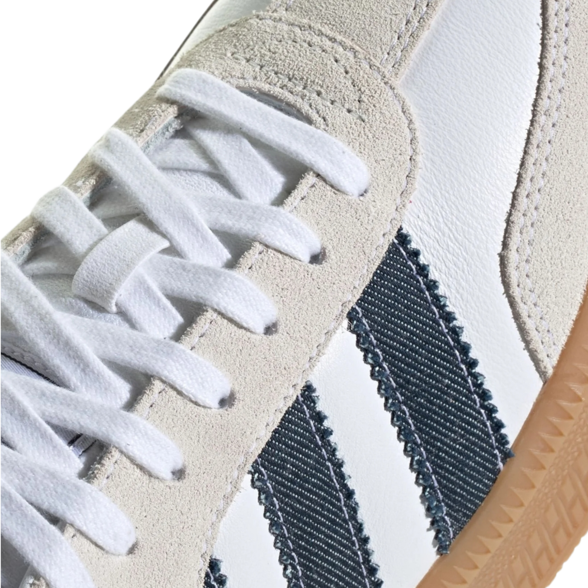 Le Adidas Samba OG White/Navy riprendono il design classico della storica Samba, reinterpretato con dettagli eleganti e moderni. La tomaia in pelle bianca con sovrapposizioni in suede chiaro si abbina alle tre strisce in tessuto blu navy, creando un contrasto pulito e versatile. La suola in gomma color gum garantisce comfort e un look retrò senza tempo. Perfette per chi cerca uno stile casual e streetwear con un tocco vintage.