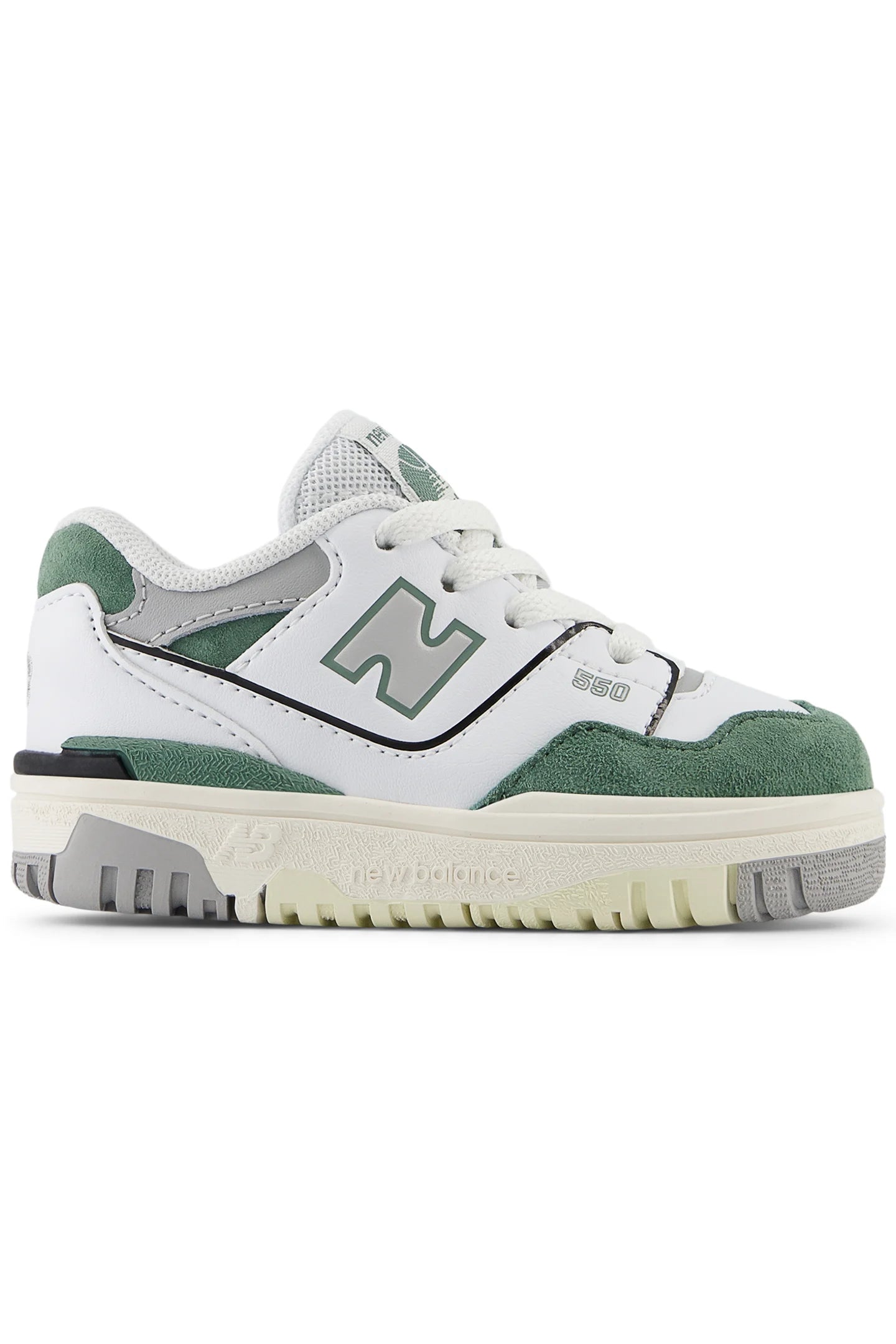 Le New Balance 550 Bambino in bianco e verde reinterpretano uno dei modelli più iconici della tradizione basket anni ’80. La tomaia in pelle e suede offre resistenza e stile, mentre la suola in gomma garantisce aderenza e comfort durante tutta la giornata. Perfette per i look casual e sportivi dei più piccoli.