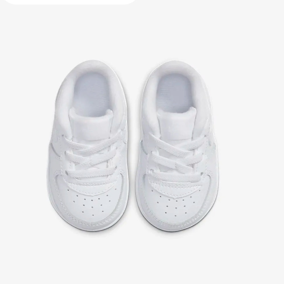 Le Nike Air Force 1 Crib Bianco Neonato ripropongono il design iconico delle AF1 in una versione pensata per i più piccoli.