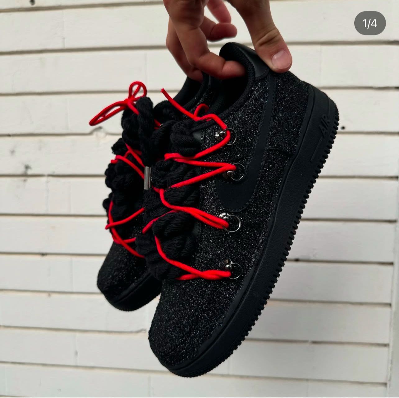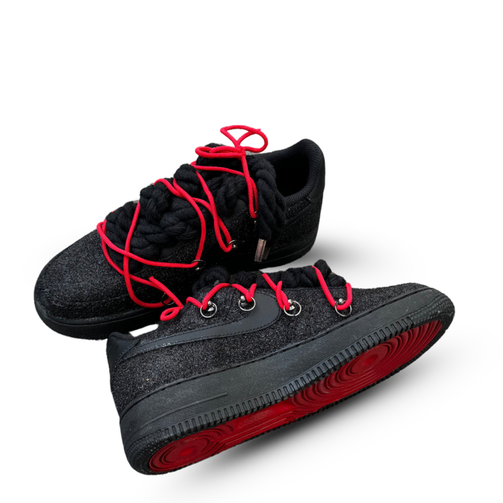 Nike Air Force 1 Low Black Glitter con Doppio Laccio Rosso – Sneakers Unisex
