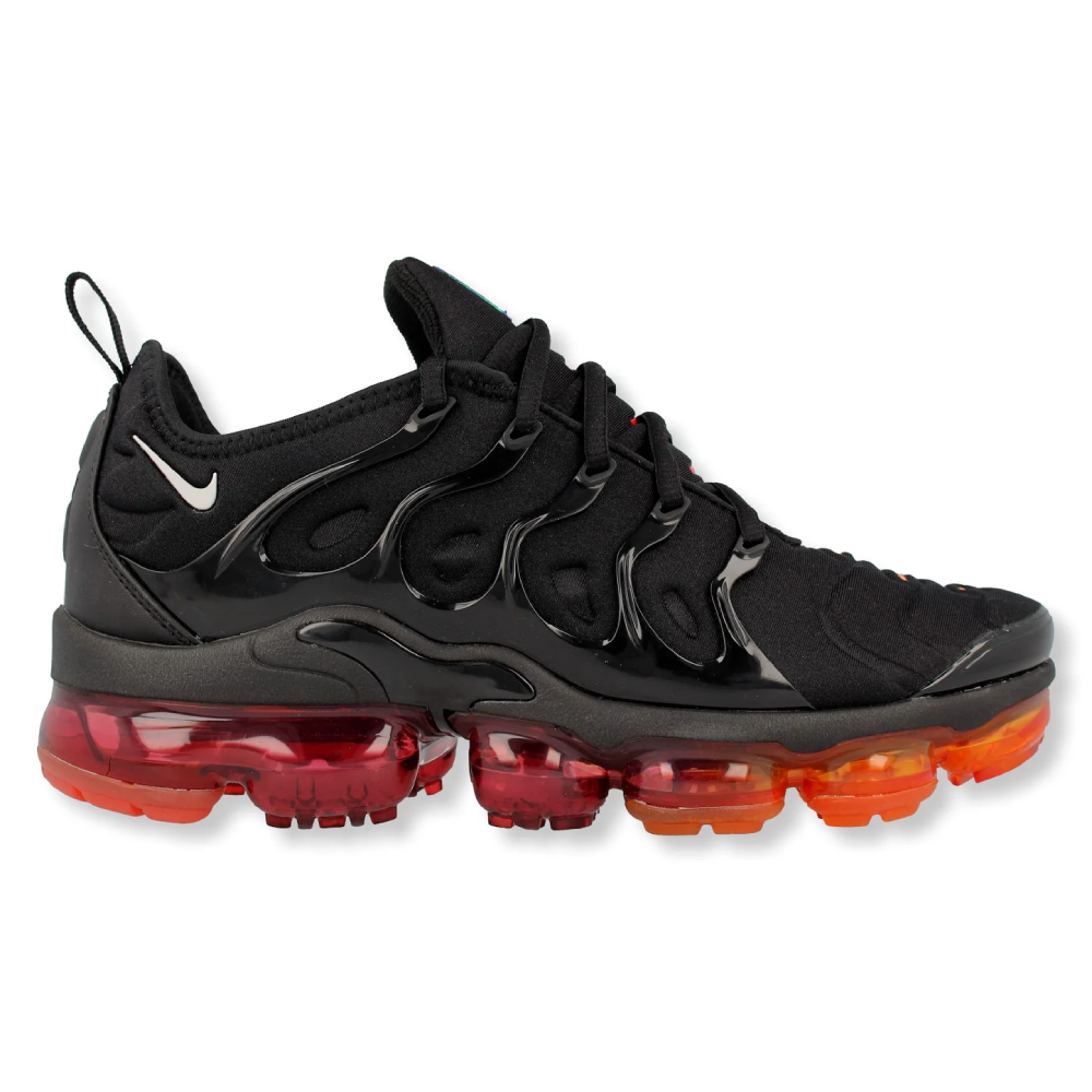 Le Nike Air Vapormax Plus Nero/Arancione combinano il design iconico della Air Max Plus con la tecnologia innovativa Vapormax. La tomaia in neoprene nero con dettagli sagomati e il mini Swoosh bianco offrono un look dinamico, mentre la suola trasparente con unità Air arancioni garantisce ammortizzazione e comfort reattivo. Perfette per chi vuole distinguersi con uno stile audace e futuristico senza rinunciare al comfort.
