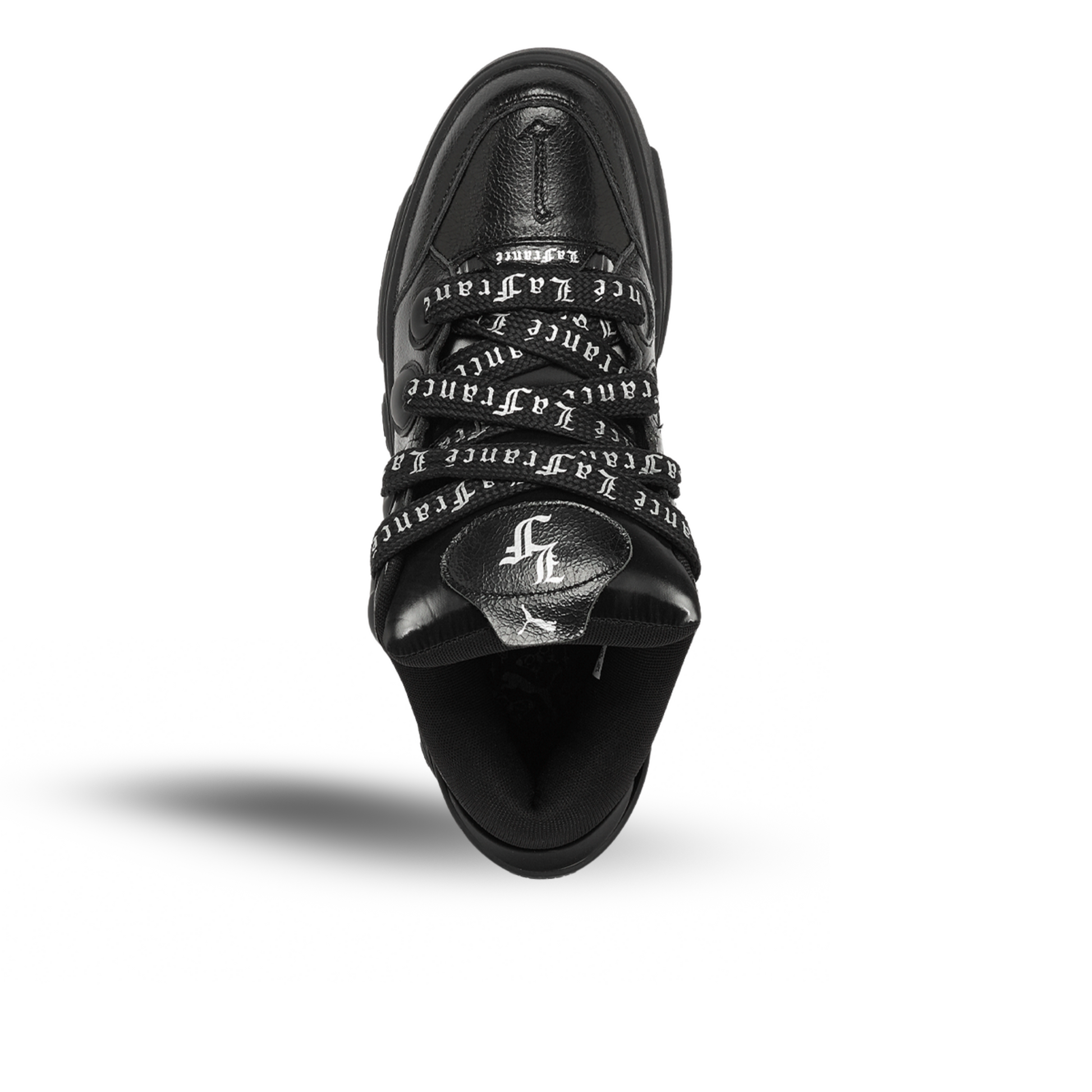 Le Puma Le Francè Nere combinano design d’avanguardia e stile urbano, per un look deciso e contemporaneo. La tomaia total black, arricchita da dettagli in rilievo e lacci personalizzati con scritta Le Francè, dona un tocco esclusivo e ricercato. La suola chunky nera garantisce comfort, stabilità e un’estetica bold perfetta per chi ama distinguersi con un outfit streetwear di carattere.