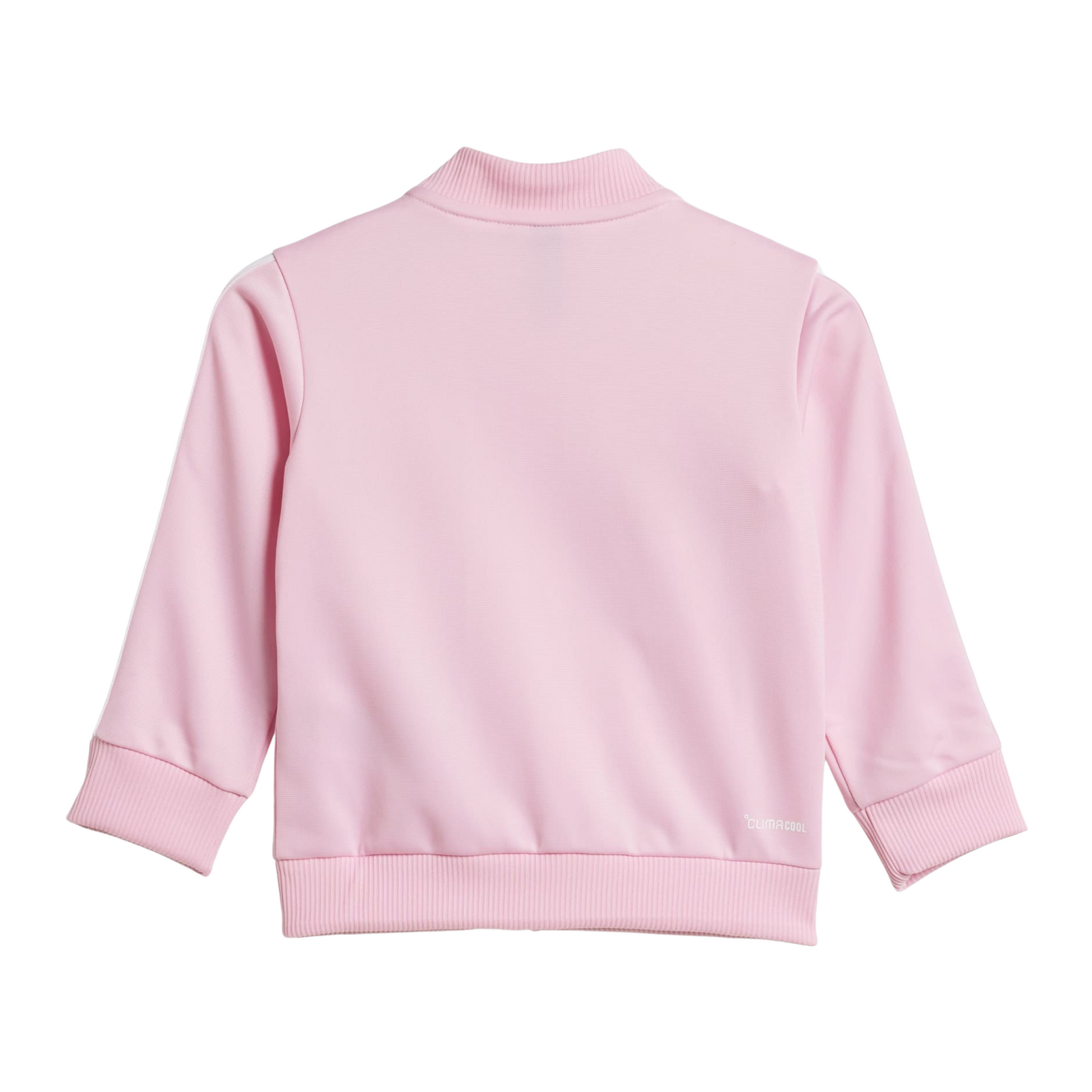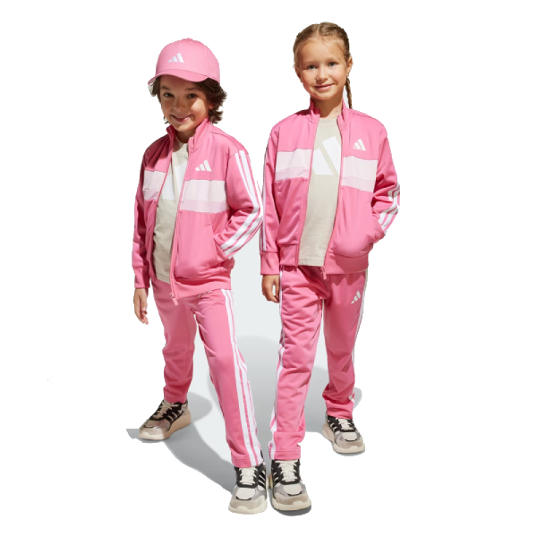 La tuta Adidas bambini rosa unisce comodità e stile sportivo per i più piccoli. Realizzata in tessuto morbido e resistente, include una giacca full zip con bande bianche sulle maniche e dettagli rosa a contrasto sul petto, abbinata a pantaloni con elastico in vita per un fit confortevole. Perfetta per scuola, sport e tempo libero.