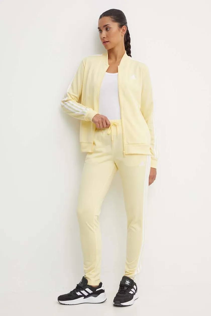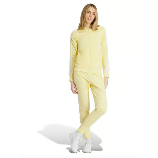 La tuta Adidas donna gialla è perfetta per chi cerca un look vivace e sportivo senza rinunciare al comfort. Realizzata in tessuto morbido e traspirante, è composta da giacca full zip e pantaloni coordinati con vita regolabile. Le 3-Stripes bianche lungo le maniche e i lati dei pantaloni aggiungono il tocco iconico Adidas. Ideale per allenamento, tempo libero e outfit streetwear originali.
