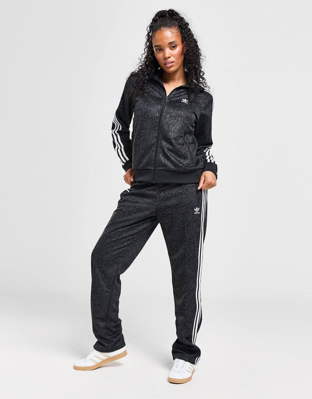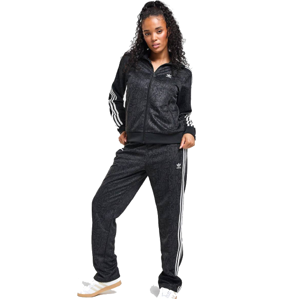 La tuta Adidas nera monogram donna combina eleganza e sportività grazie al design raffinato con motivo monogram tono su tono. Realizzata in tessuto morbido e confortevole, presenta giacca full zip e pantaloni coordinati, arricchiti dalle iconiche 3-Stripes bianche lungo le maniche e i lati. Perfetta per un look casual, streetwear o per il tempo libero, aggiunge un tocco di stile unico firmato Adidas Originals.