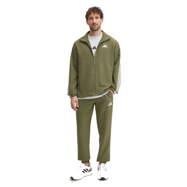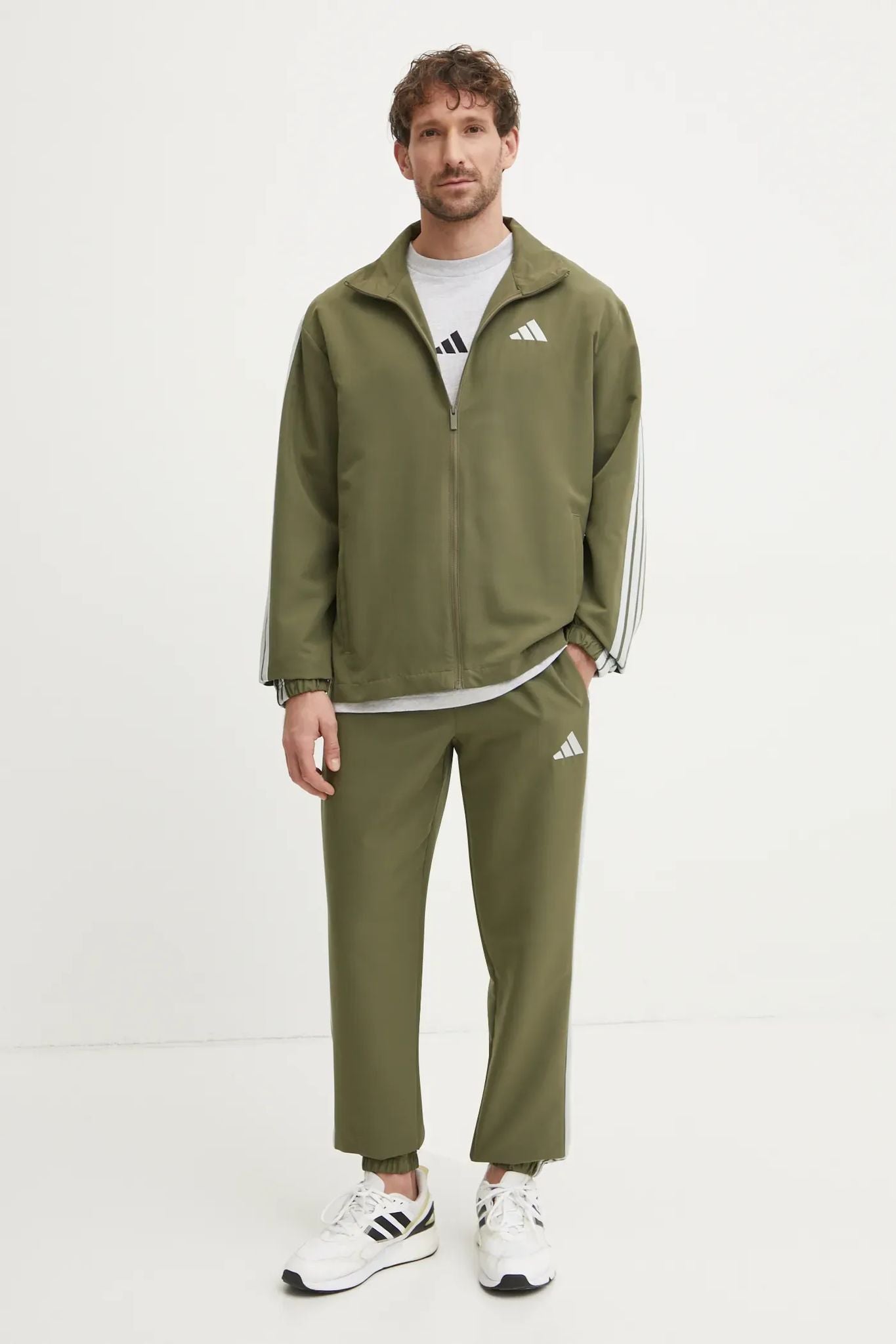 La tuta Adidas verde oliva uomo unisce comfort e stile sportivo in un design essenziale. Realizzata in tessuto traspirante e resistente, presenta una giacca full zip con logo Adidas bianco sul petto e pantaloni coordinati con dettagli a tre strisce laterali. Perfetta per l’allenamento, il tempo libero e per chi cerca un look casual ma distintivo.