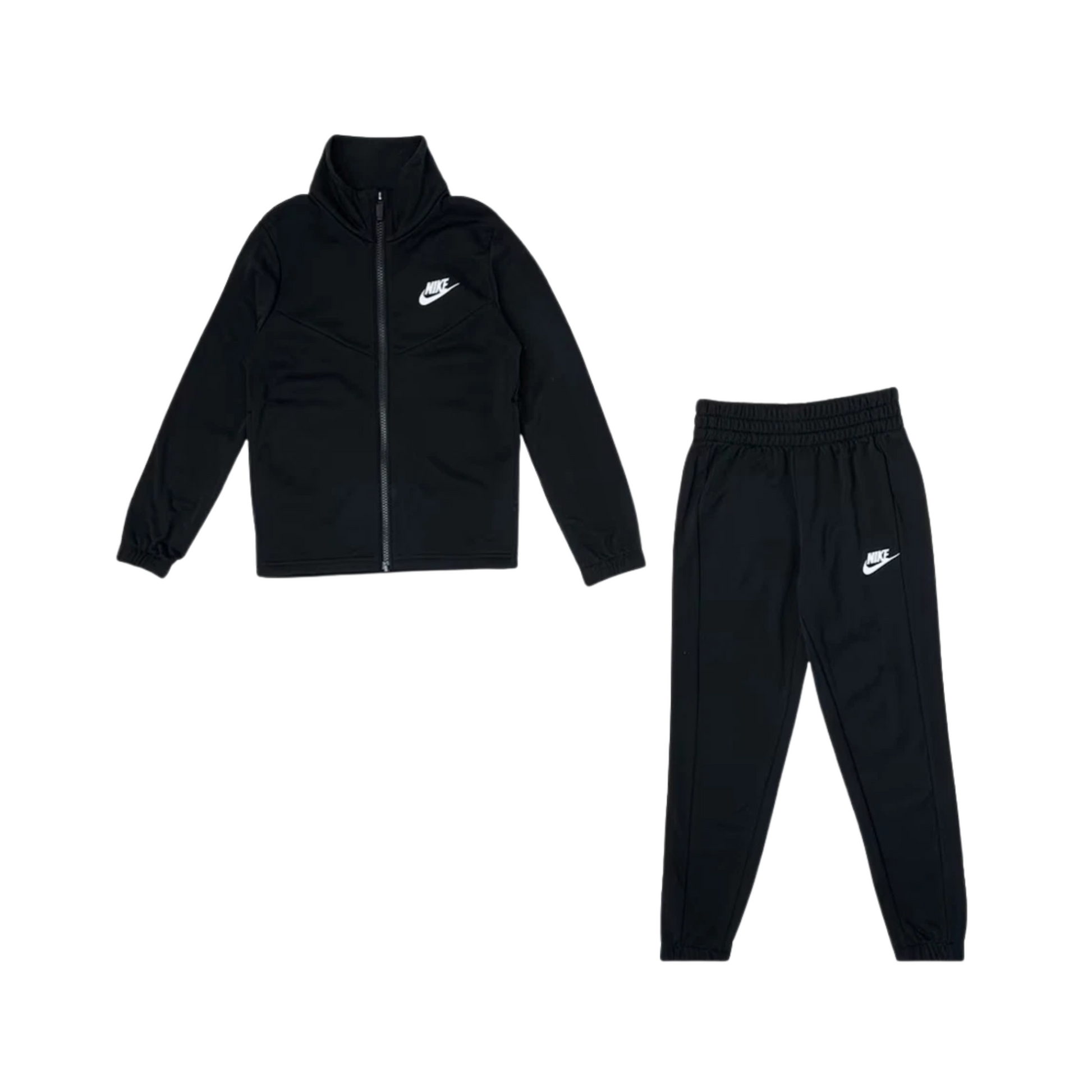 La tuta Nike bambini nera combina praticità e stile sportivo. Realizzata in tessuto leggero e resistente, include una giacca con zip corta e tasche funzionali abbinata a pantaloni coordinati. Il logo Nike bianco sul petto e sulla gamba aggiunge un tocco iconico e inconfondibile. Ideale per la scuola, il tempo libero e le attività sportive.