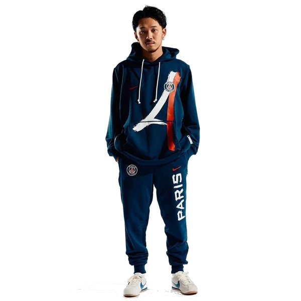 Mostra la tua passione per il Paris Saint-Germain con questa tuta ufficiale PSG. La felpa con cappuccio presenta il design iconico con banda rossa e bianca sul petto, mentre i pantaloni coordinati riportano la scritta PARIS sulla gamba. Realizzata in tessuto morbido e confortevole, è perfetta per il tempo libero, il tifo sugli spalti e lo streetwear quotidiano.