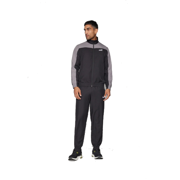 Questa tuta Puma da uomo combina comfort e stile sportivo. La giacca full zip presenta un design bicolore con base nera e inserti grigi a contrasto sulle spalle e sulle maniche. I pantaloni coordinati, neri con logo Puma bianco, completano il look sportivo e versatile. Ideale sia per l’allenamento che per il tempo libero.